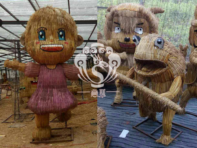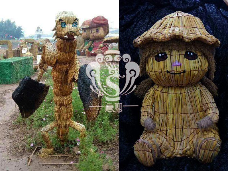 稻草人藝術(shù),不僅充分利用的稻草秸稈制作出各種有趣的形象,與此同時還能減少秸稈的焚燒,為我們的藍天白云,子孫后代做一份貢獻!現(xiàn)在的精致稻草人藝術(shù)通常是由專業(yè)美術(shù)老師的造型放樣,然后由焊工師傅焊接出立體造型造型,然后以稻草或者稻草繩為材料編捆制作而成。