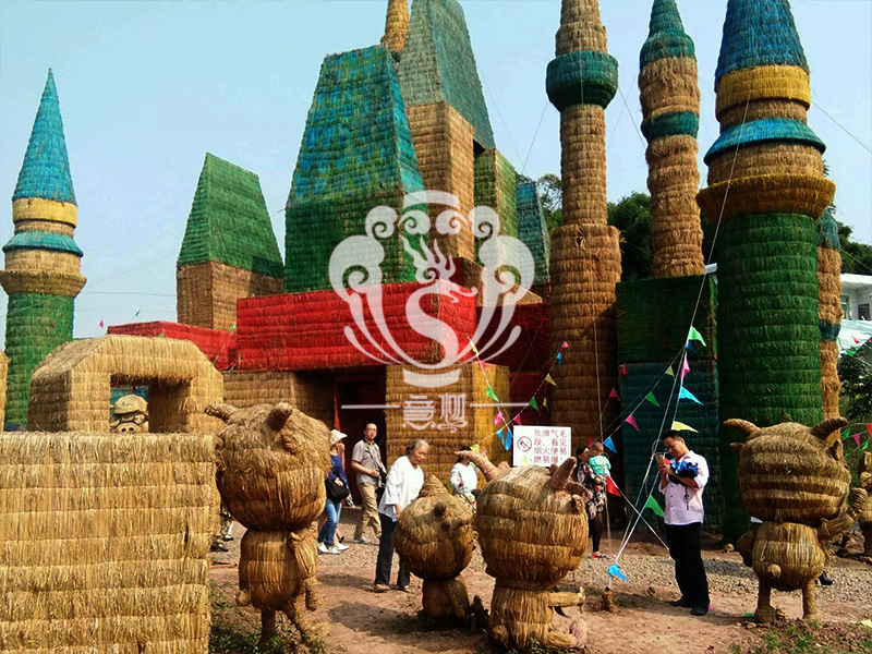 現(xiàn)在的精致稻草人藝術(shù)通常是由專業(yè)美術(shù)老師的造型放樣,然后由焊工師傅焊接出立體造型造型,然后以稻草或者稻草繩為材料編捆制作而成。