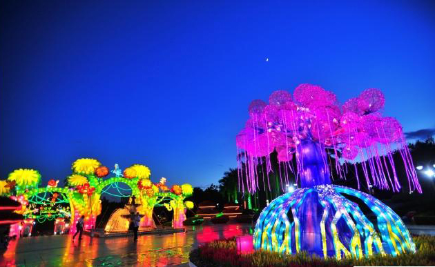 據悉,本次燈展緊扣綠色環保主題,光源全部采用節能環保的LED燈,燈飾材料選用燙金紗。燈展主要打造了“遠古森林”“神奇動物”“人與自然”三個主題燈飾展區,17組大型燈組。