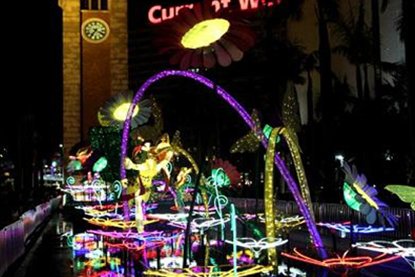 香港新界的沙田公園及青衣公園,同樣人潮涌動(dòng),熱鬧非凡。一架5米高的傳統(tǒng)大型走馬燈,配合多組極具特色的彩燈,將公園的夜晚點(diǎn)綴得光彩奪目。此外,大型民族歌舞表演、雜技表演、粵港傳統(tǒng)手工藝示范等節(jié)目同期舉行,讓人們大飽眼福,流連忘返。