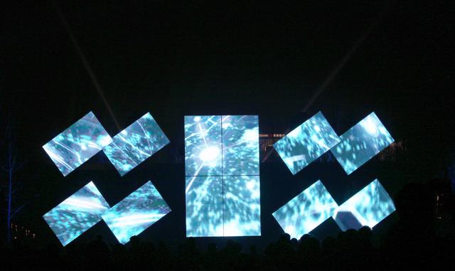 機械臂動感屏繼承了虛擬樣機設計、液壓同步、單軸多電機驅動以及實時位置檢測反饋等多項技術,實現LED背景在任意空間的無縫拼接和連續,配合視頻內容完成平移、旋轉等各種自由拼圖,以實現視頻最佳的表達效果。由張藝謀創意團隊成員領銜組成的創意團隊,對燈光秀機械臂移動、機械臂上固定的顯示屏、電腦燈、樓體立面LED點屏幕以及配套的音樂進行了整體的創意和編排。