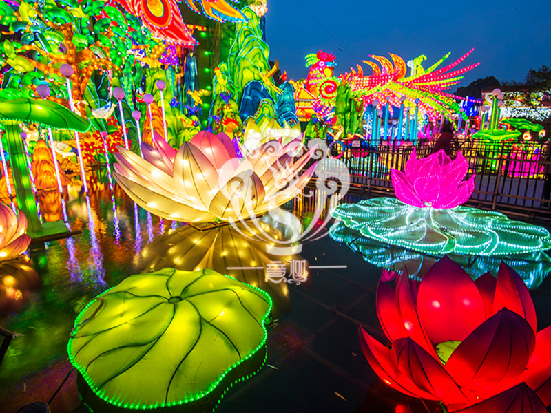 唐朝以后,北京、西安、洛陽、蘇州、杭州、福州、潮州、成都、廣州、泉州等十大城市的花燈活動尤為盛行。到了宋代,花燈發(fā)展到了新的高峰,樣式變化萬千。《東京夢華錄》記載:汴京(今開封)宮廷扎做燈山,有普賢、文殊佛騎獅子、白象等燈,佛像的手能活動。工匠們用轆轤絞水,把水送到燈山高處的大木柜內(nèi),讓水從佛像的手臂澆出,狀如瀑布。正如崔液詩中所說:“燈神佛火百輪張,刻象圖形七寶裝。影里如開金口說,空中似放玉豪光。”南宋宮廷扎做琉璃燈山,高達(dá)五丈,燈山上的各種人物燈彩栩栩如生。《武林舊事》中說:“那時燈品至多,精妙絕倫。”有同玻璃球一樣的璀璨的無骨燈,有灌水轉(zhuǎn)機(jī)、百物齊動的機(jī)關(guān)燈,有刻鏤金珀、飾以玳瑁的魷魚燈,有以五色珠為網(wǎng)、下垂流蘇的珠子燈,有白玉制作、繪嫦娥奔月、稀釋采蓮、劉海戲蟾故事的人物燈,還有制作精奇的各式工藝彩燈、宮燈、壁燈、吊燈、花卉燈、動物燈、山水燈、玩具燈,甚至有仿龍舟、鰲山、亭臺樓閣的造型燈,以及燈塔、燈山、燈牌坊、過街燈等等。這些燈爭艷斗奇、琳瑯滿目、瑩煌炫轉(zhuǎn)、照耀天地。
